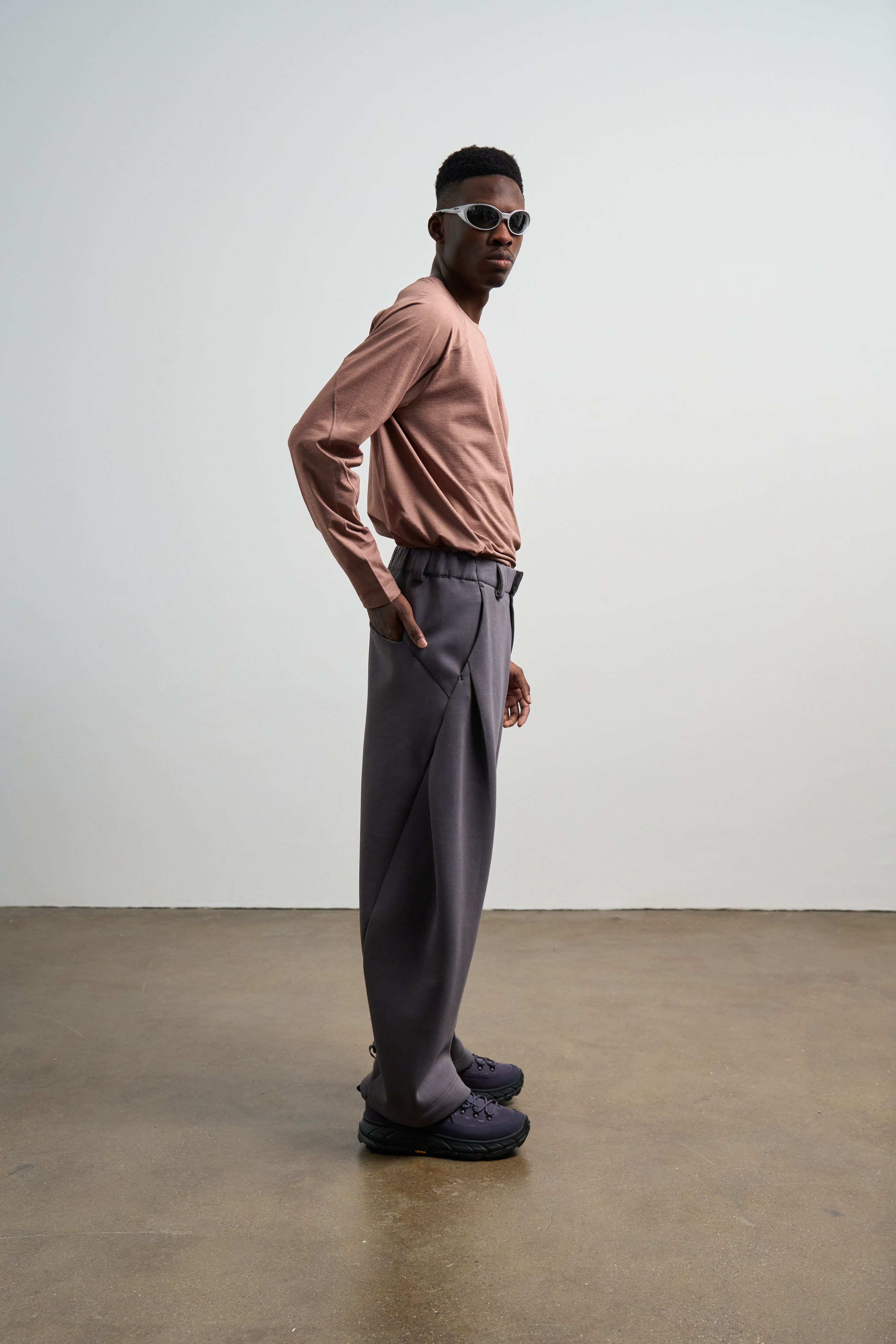 Спортивные брюки свободного кроя с уникальным силуэтом «изогнутый нож». Модель сочетает комфорт, функциональность и современную эстетику благодаря высококачественной смесовой ткани с антибактериальными свойствами и эффектом сохранения тепла. Подходят для повседневной носки, отдыха и активного образа жизни.