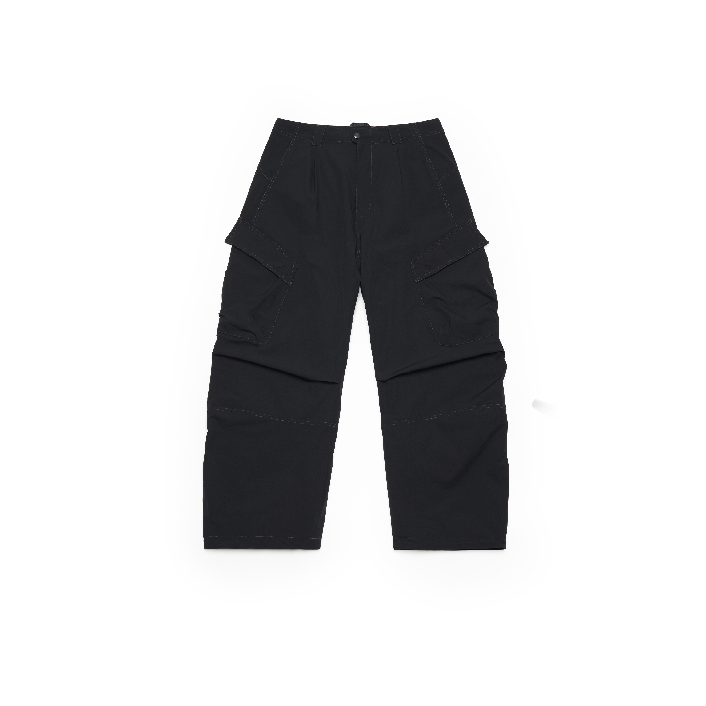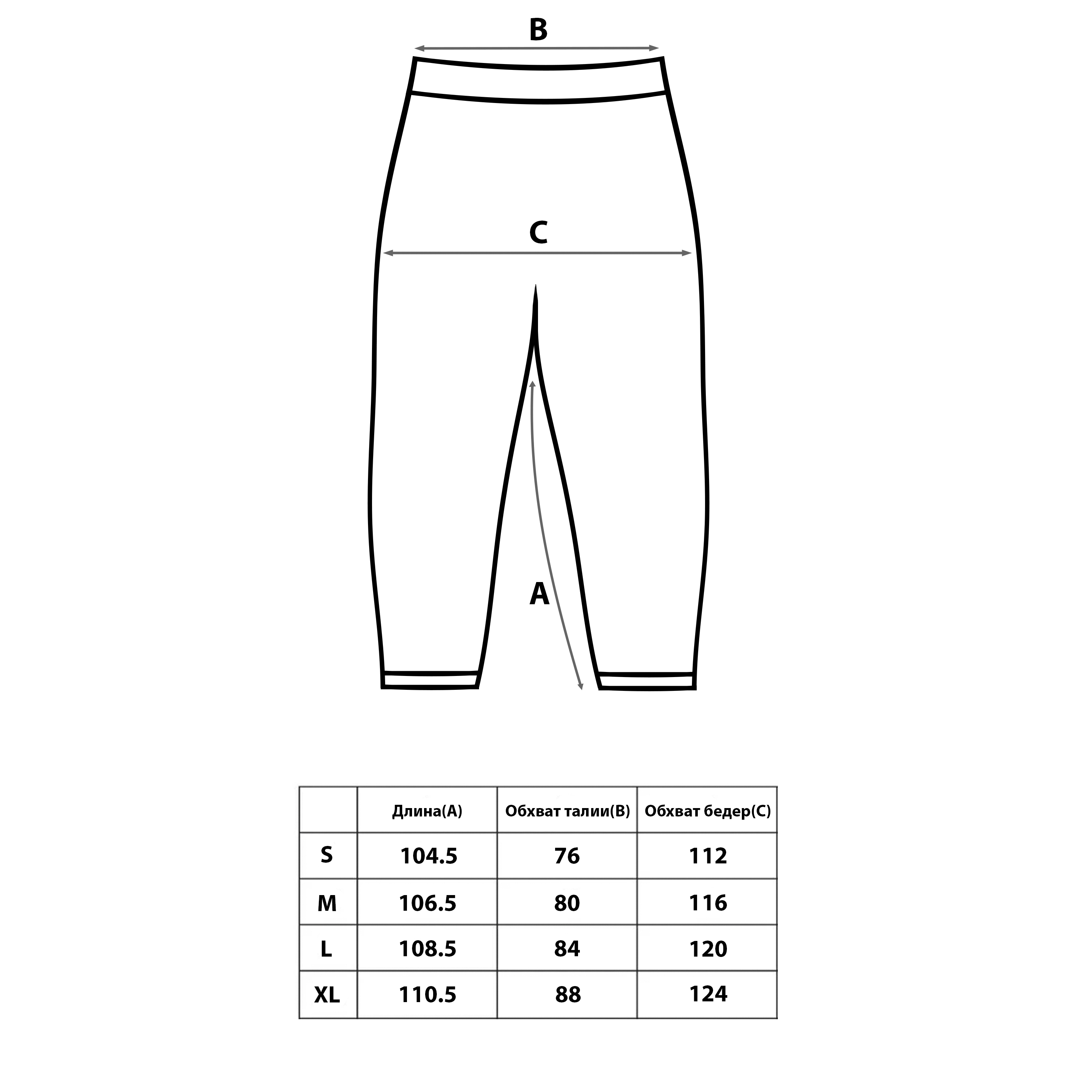 - Свободный крой с изогнутыми штанинами;