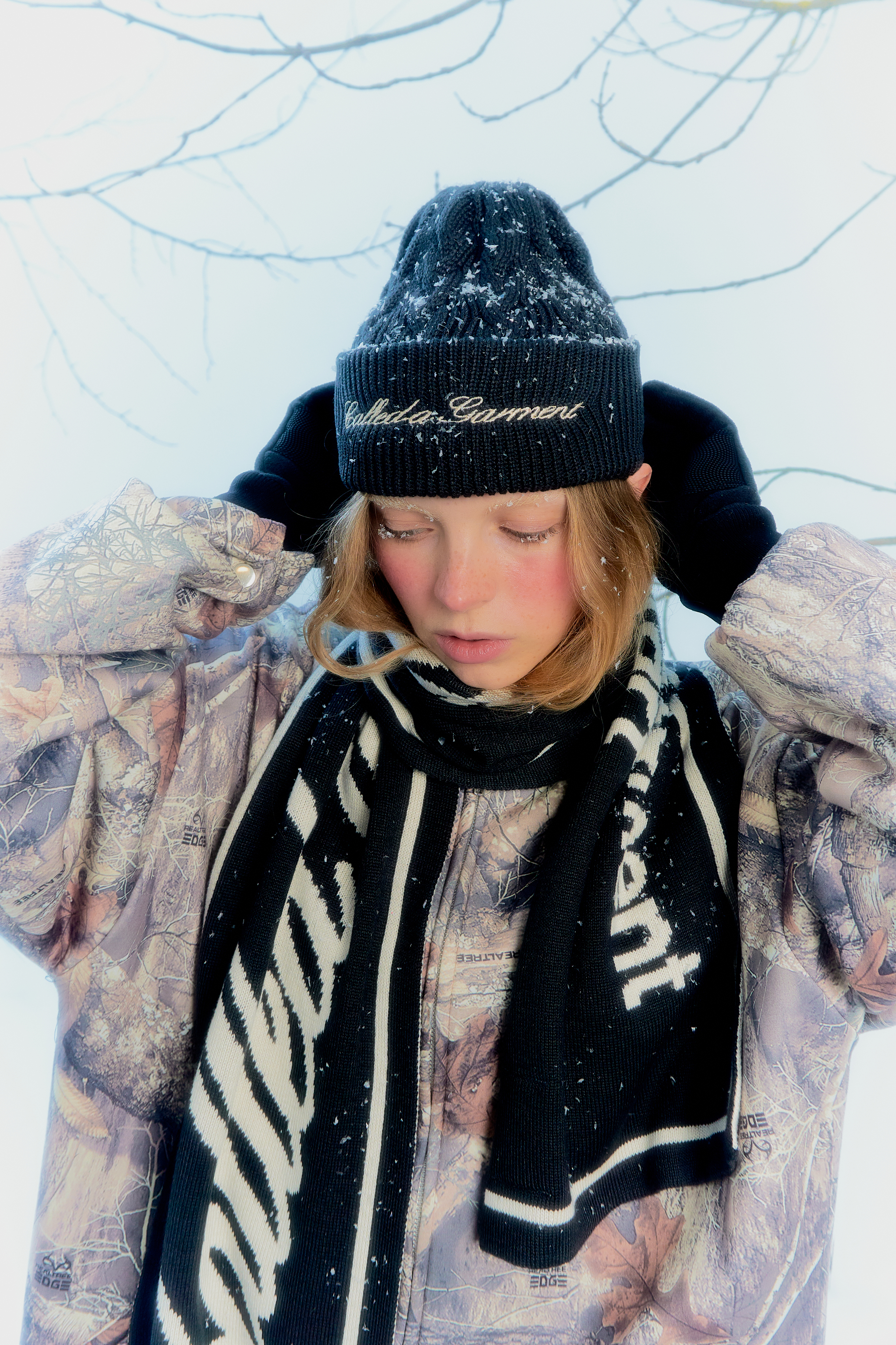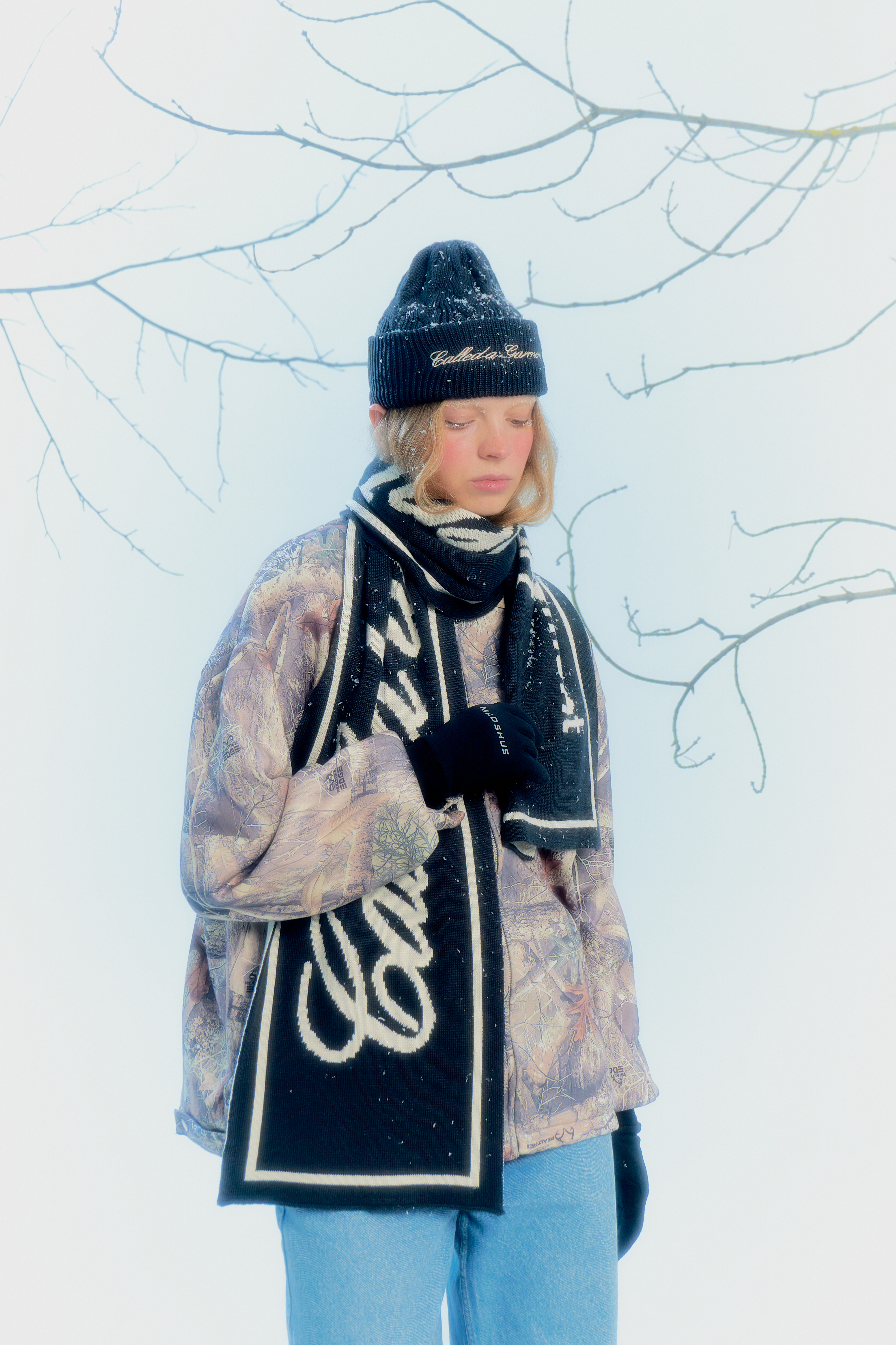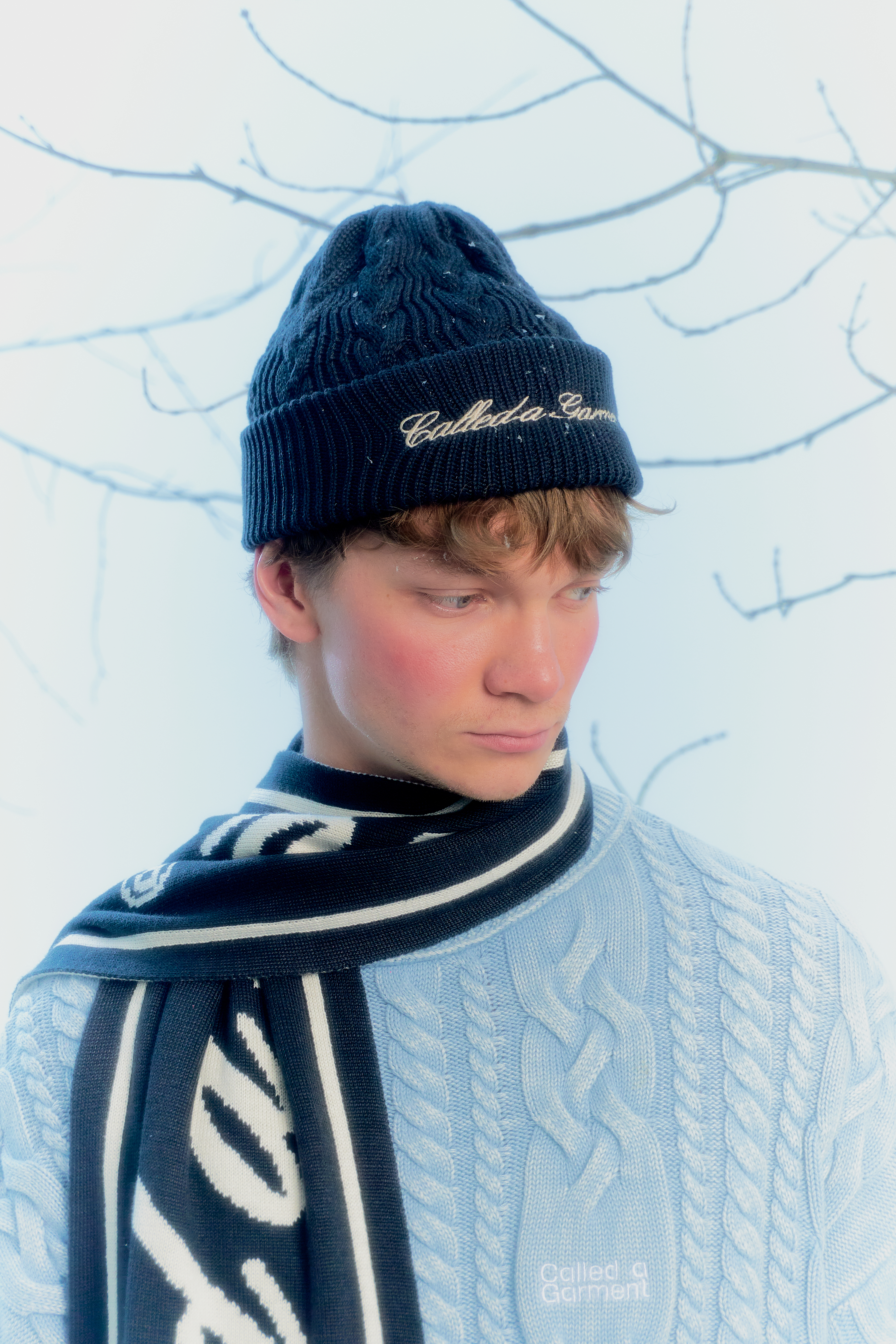Модель выполнена из сбалансированной пряжи (50% хлопок, 50% акрил): дышит и при этом удерживает тепло. На передней части — аккуратный логотип в фирменном шрифте CG, перекликающийся с вышивкой на шарфах ART DEPARTMENT. Айтемы идеально сочетаются между собой — их можно носить как в паре, так и пробовать разные цветовые комбинации.