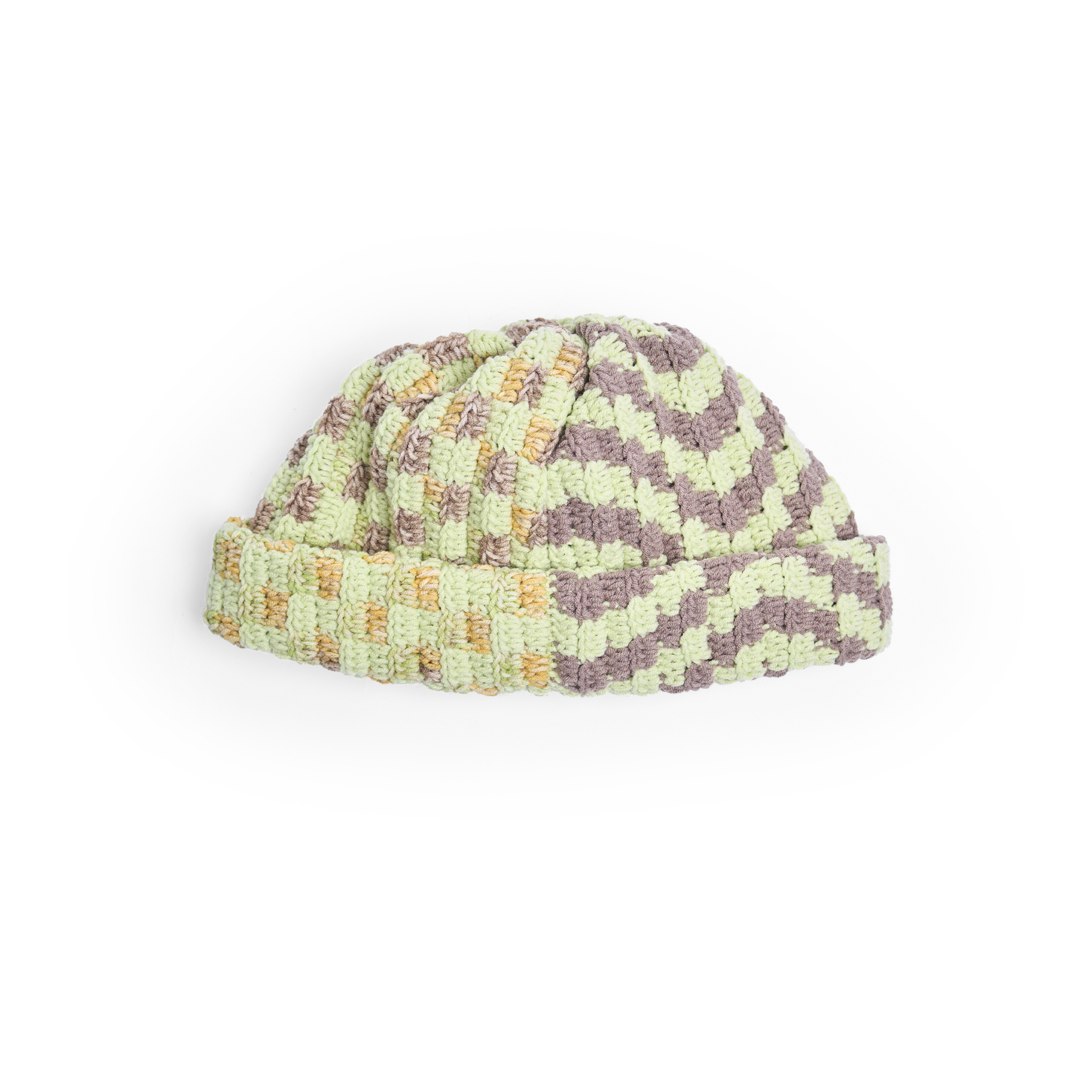 Демисезонная унисекс шапка-бини связана вручную из облегчённой пряжи.